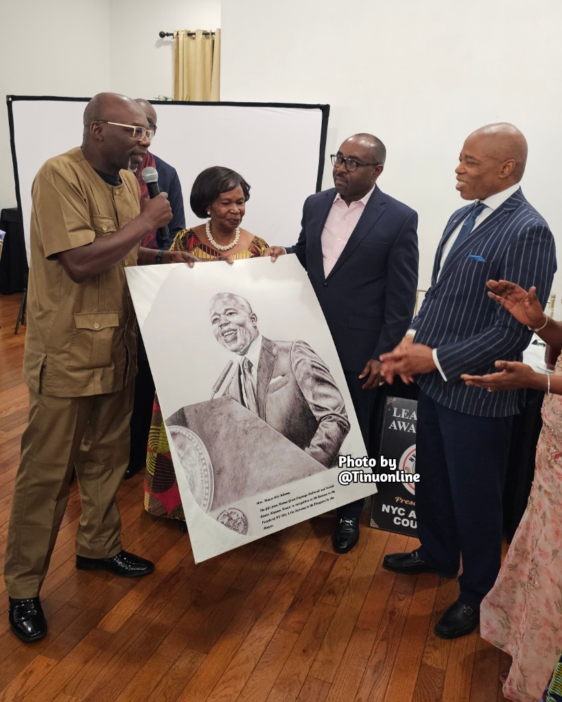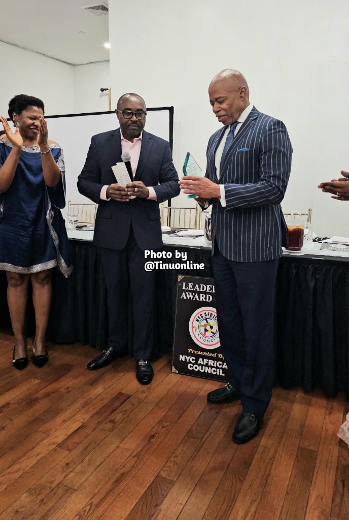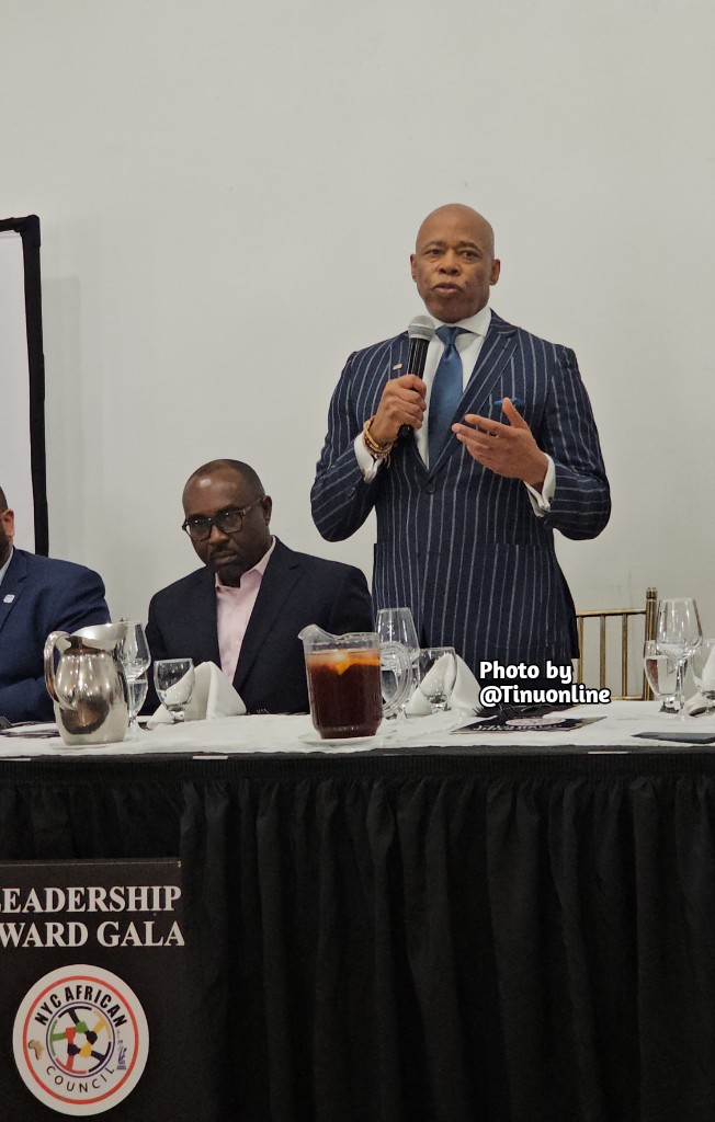 Harlem served as the appropriate venue for a much needed affair heralding the African community over the weekend, under the auspices of the NYC African Council with Mr. Len Ejiogu taking the lead organizing such a huge fête. The NYC African Council leadership awards gala dubbed as the much anticipated farewell party for the outgoing city Mayor Eric Adams. Diplomatic representatives of several notable African nations showed up bearing gifts with heart full of gratitudes for the Mayor, which he received wholeheartedly with tear jerking farewell speech, which can be seen at the video link posted below. Mayor Adams made a point to stop at every guests table to shake hands and take pictures with each group. He became the 110th Mayor of NYC, the first to fully incorporate African community into the fibers of the city’s political landscape and affairs. He inaugurated such events as the African Heritage Day, which was sumptuously celebrated annually at the historic Gracie Mansion, the official residence of NYC Mayor, raising of flags of African nations on their respective independence day at the Bowling Green Plaza, and enlisting a handful of Africans as members of his staff.